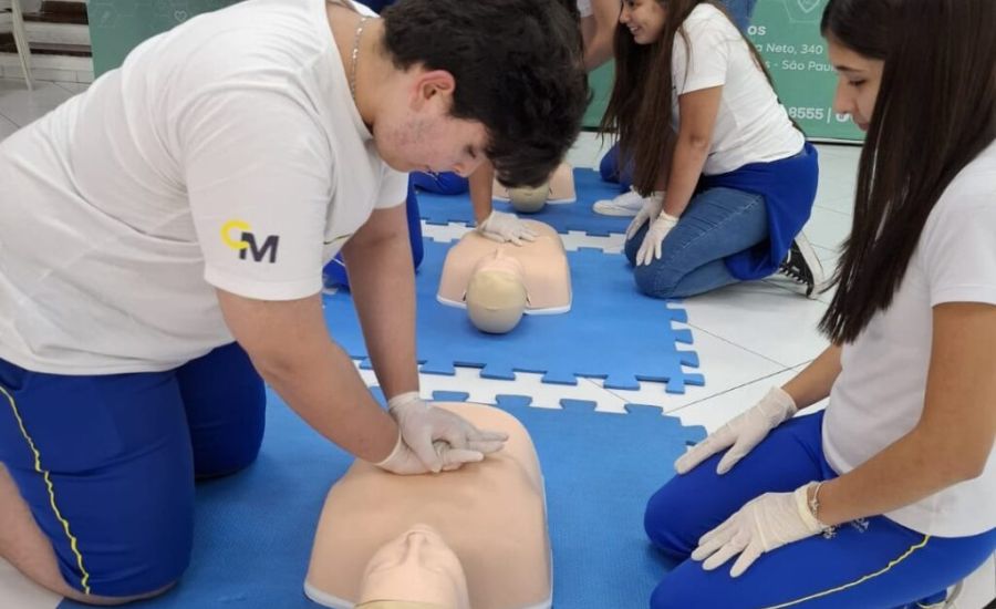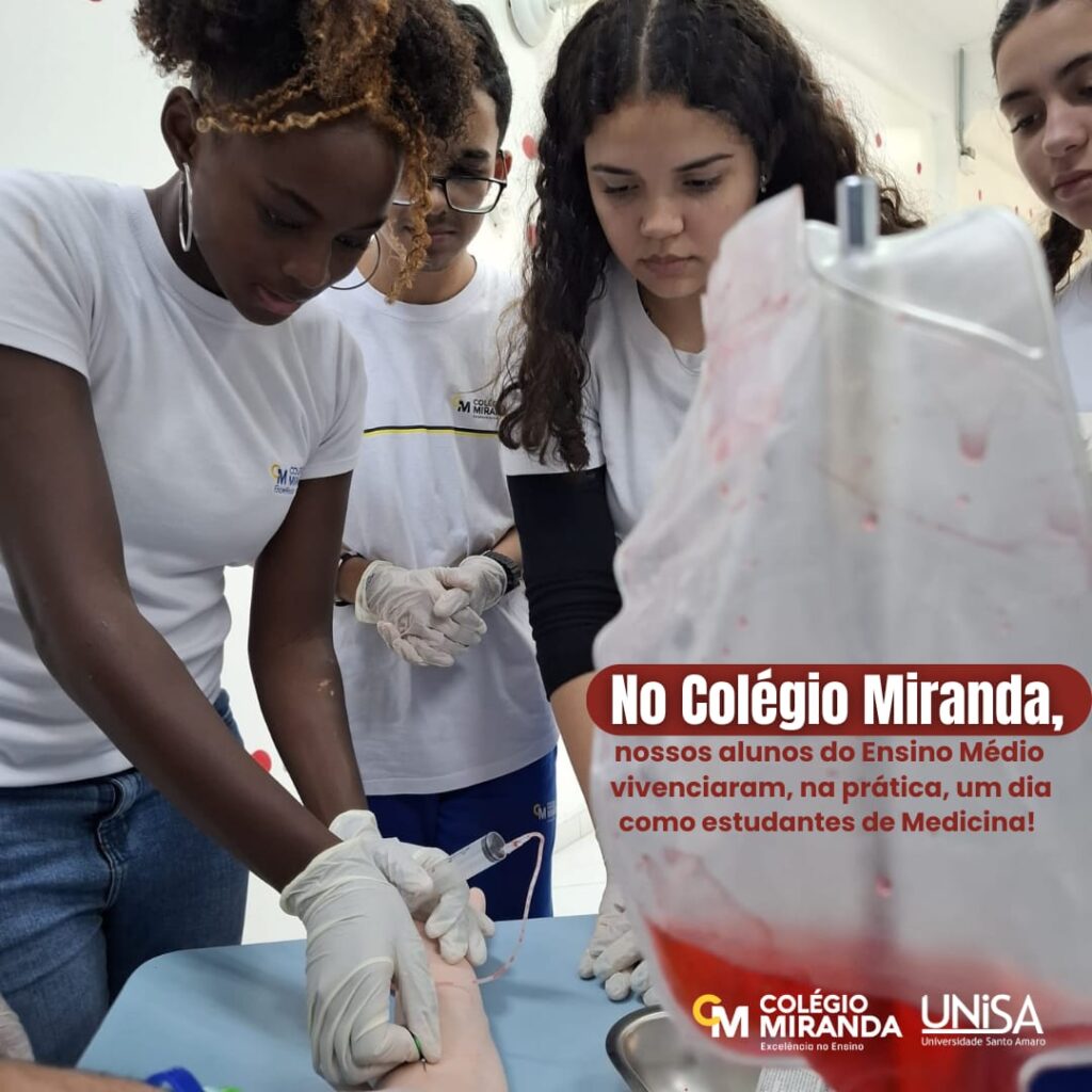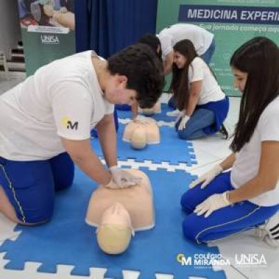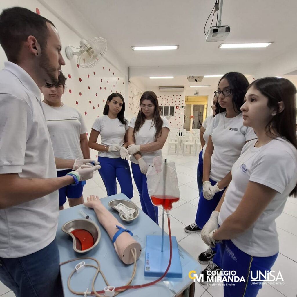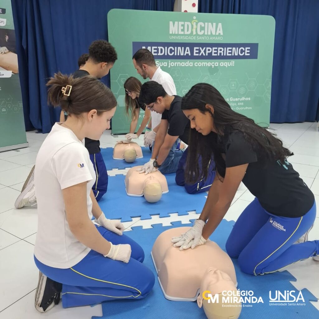 Nossos alunos do Ensino Médio vivenciam experiências reais que os aproximam da carreira dos sonhos. Em parceria com a Universidade Santo Amaro – UNISA, oferecemos práticas na área da saúde, como manobras de primeiros socorros, aplicação de injeções e simulações clínicas completas.